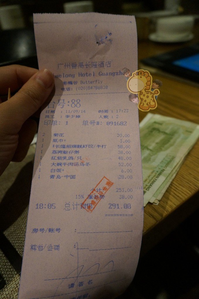 看看我们的餐单,价格不菲吧,随随便便的都要50块钱左右,真心不便宜地说,还要加15%的服务费,另外还要加收茶水费,不论你要不要茶,餐厅也要加收茶水费。