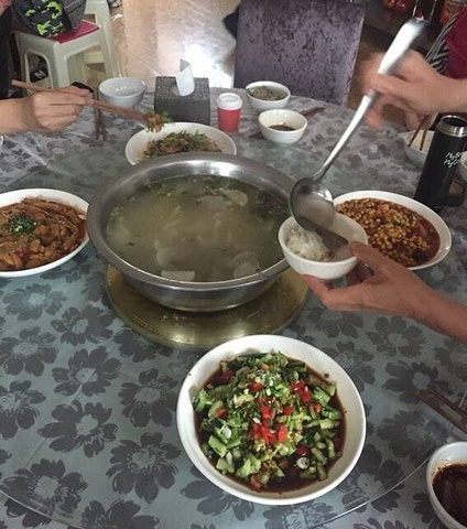 ...送的最后一餐,说是特色牦牛锅,真的超一般,也看出来物价贵了,今晚的晚餐只有4个菜+一盆牦牛汤锅