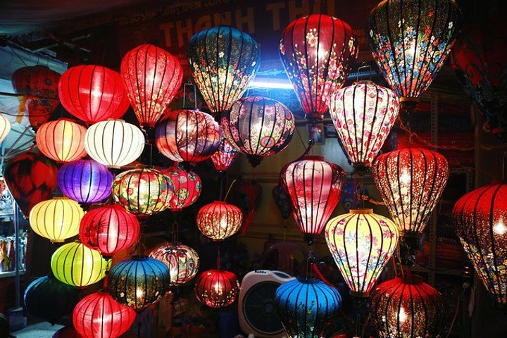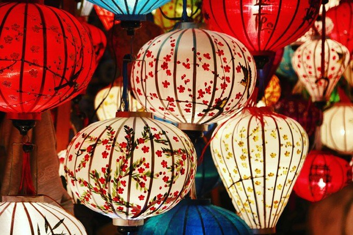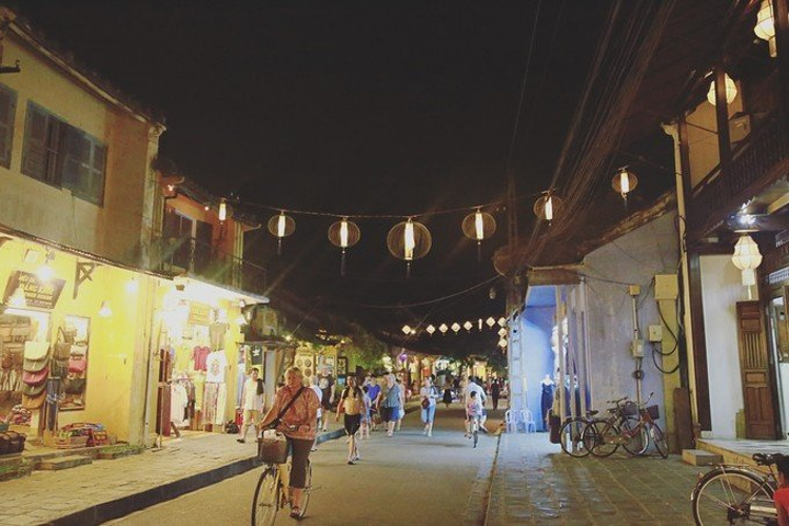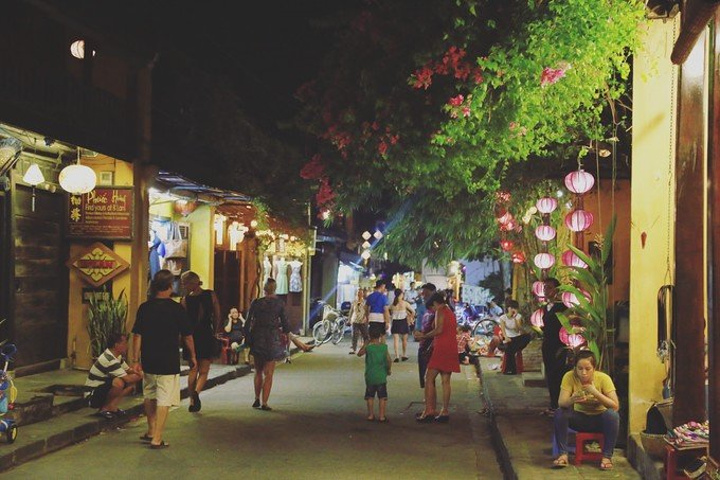 因为是从酒店定的团,所以不知道为什么最后司机把我们放到了会安的中心,我们又打了个的回的酒店,幸亏不远。 经过了一上午的暴晒,我们每个人都黑了一层,有个小伙伴还晒伤了,所以我们选择在宾馆里好好洗个澡休养生息一下,等到傍晚再去古城玩一玩。 古城好像是有通票的,可以进入古城的各个祠堂,约27元,但是我们进的那个入口不收费。 晚上游古城才是正确的打开方式,舒适的温度,各式各样的灯笼点缀着古城的小路和店面。