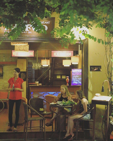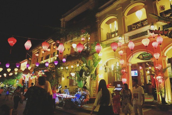 我的三个小伙伴被灯笼吸引的走不动路了哈哈哈哈。 古城内有一条特别热闹的酒吧街,晚上人都聚集在那边了,河边还有放莲花河灯的,不知道多少钱,但是卖河灯的人都有点粗鲁。 古城里卖的百香果汁很好喝,我记得是30,000盾(约9元)一杯吧。我的一个小伙伴到现在都念念不忘,回来买了一堆百香果自己泡着喝哈哈哈哈。