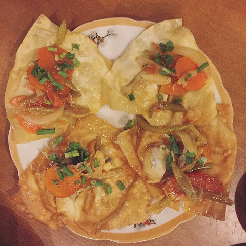 炸云吞。中间有只虾,外面被炸的脆脆的,很香。60,000盾(约18元)一份。