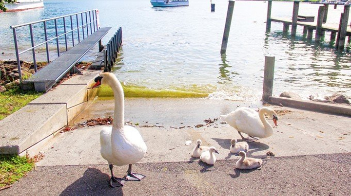 下了船就看见在那里慵懒晒太阳的一家子。 小鸭子毛茸茸的特别可爱!