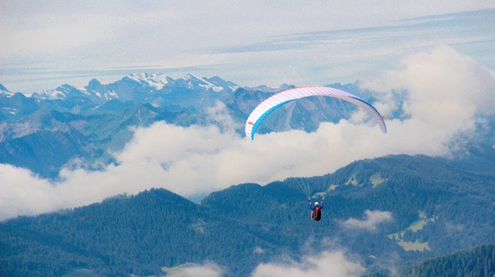 一到山顶就看见有人背着滑翔伞往前狂奔,一下子就像远处飞了出去。山顶并没有提供这种服务,想必一定是滑翔爱好者,我看着他飞远,心中顿时一股肃然起敬。