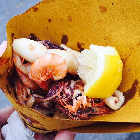 这就是我打五星的炸海鲜(frito),噢我的天哪!小岳岳脸 x100次!因为渥尔特拉本身就不出名,这家店就更难在网上找到了.我用尽全力研究了一下渥尔特拉的卫星地图,然后一家一家店的看,都没有找到。那我就大概形容一下,希望有缘人可以吃到它。 它是一个外带店面,走进去后是玻璃的柜子,炸海鲜就零散地放在上面。店面的外观我已经不记得了,但是我记得它离一个小镇的边门很近,那边有一个停车站之类的地方。(我觉得如果有人真的吃到它,一定要告诉我!!!)