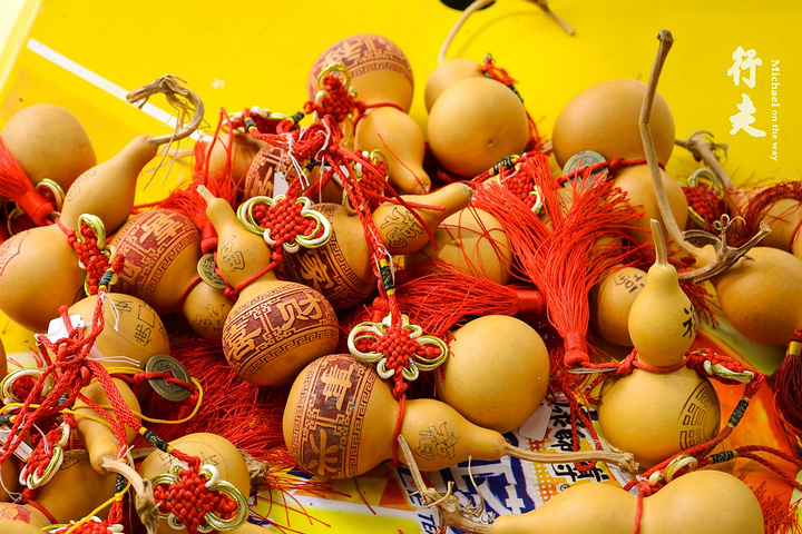 寺庙内售卖的精美的小玩意:葫芦,這些葫蘆上面都印有一些美好的祝福:平安健康、恭喜發財、事業興旺等,都是代表著人們心中美好的願望。