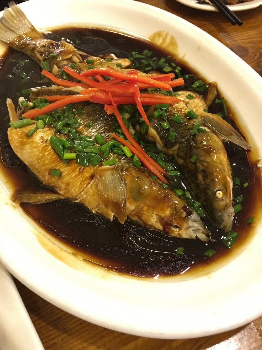 这是我们点的单价最高的一道菜钱塘鱼,只要68元。本身我们是吃不来西湖醋鱼的,那选择这个鱼就很好,本身是全熟的也不腥,通通吃完了。