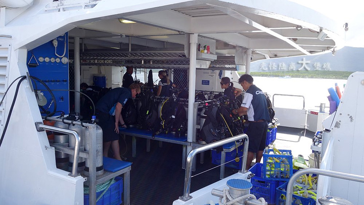 我们的船员们在出发前做最后的安全检查工作。虽然凯恩斯没有天然沙滩,但却拥有天然良港