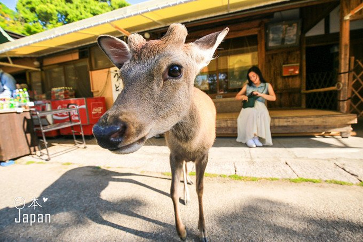 奈良公园的鹿几乎是随处可见,而且鹿都不怕人~只要你有小鹿饼干它们能没节操跟你走很远!很害怕一群的鹿,因为它们会因为我手里的食物撕咬我的裙子,有角的鹿会用鹿角顶我的屁屁讨饼干~…反正我是买了小饼干后藏在包包里面里面偷跑出来找落单的小鹿喂一下。
