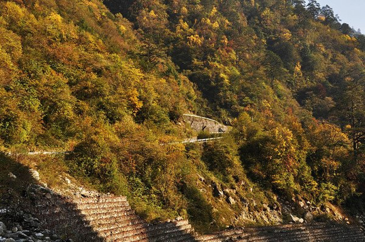 雅家埂地处四川贡嘎山海螺沟景区范围内,位于康定老榆林和海螺沟磨西镇之间的贡嘎山东坡的北部,雅家埂河上游,是贡嘎山脚下又一颗光耀夺目的明珠。自古以来就承载着内地与藏区的联系纽带作用,雅家埂身上环绕着“唐蕃古道”与“茶马古道”的双重光环。 知道天全一带修路会限行所以从成都走石棉到磨西,事实证明这是明智的选择,因为当天走二郎山的一群人晚上7点才到,而我们已经玩耍完雅家埂回到磨西。头天在网上预订了磨西镇情歌酒店118元,老板人很好,在路上就打了几个电话说过了石棉弯道多要小心车。