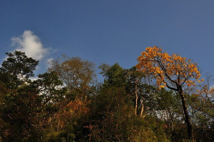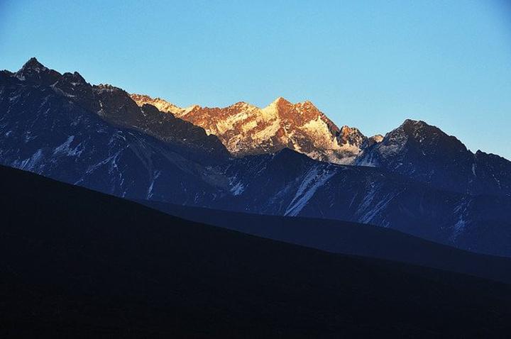山顶是雅家埂红石滩是终点,赶到这里是想拍晚霜和金山,但今天光线不理想。于是拍了照就往回走,到磨西镇住下。