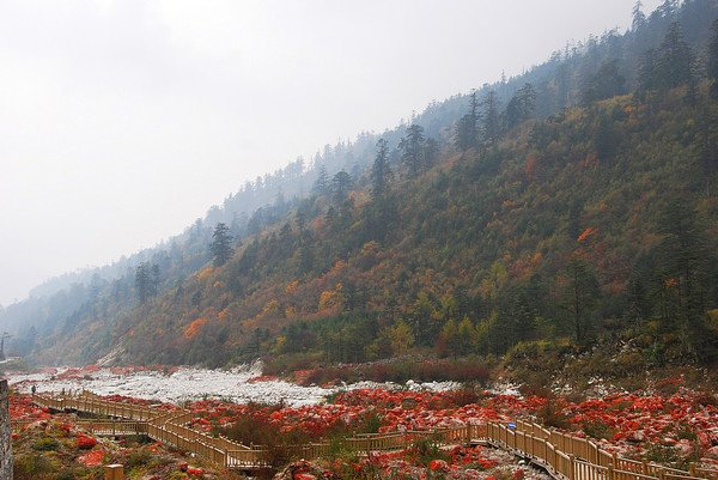 雅安梗沿途都是雪山、红石滩、红叶、面挂,仿佛置身仙境一般,美极了。于是拍了照就往回走,到磨西镇住下