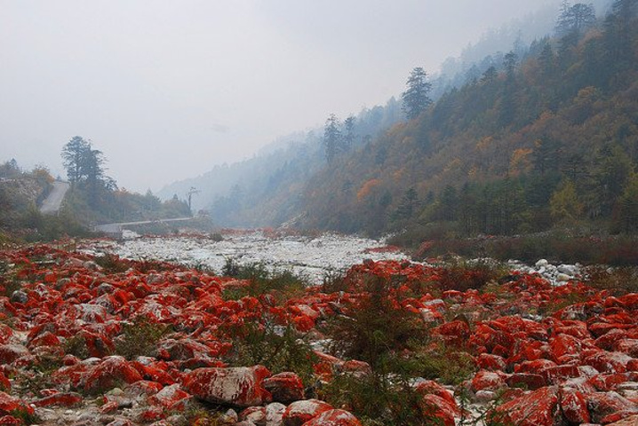 雅安梗沿途都是雪山、红石滩、红叶、面挂,仿佛置身仙境一般,美极了。
