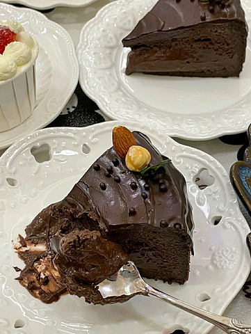 这家店在我的备忘录里已经好久好久了!!!他们家的咖啡☕️我真的很爱!!!爱丽丝梦境要点喔~无花果脆和奶油冰淇淋的点缀 一整个爱住!!下午来上一杯就惬意和舒适 点了个黑巧流心巴斯克 真的蛮不错的 浓浓黑巧味 内陷还会流心!!!化身黑巧脑袋!!!还有草莓雪山?? 草莓🍓个头很大 而且奶油都是动物奶油 放心吃!!!晚上还会有卖特调酒 那个氛围感贼拉好~太起欢了!!! - 店名:Alice Garden Cafe爱丽丝花园 地址:后埭溪路248-26号 营业时间:11:00~20:30