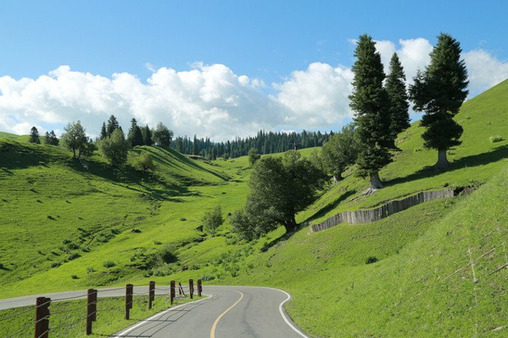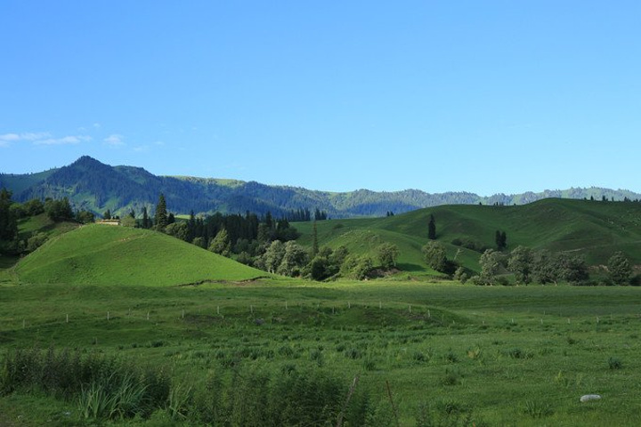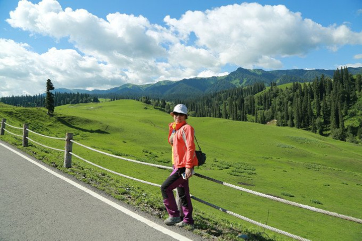 6月25日,几天来时差还是没倒过来,我和老公还是习惯早起,沿着观光车所走的道路欣赏一下晨光中的那拉提......
