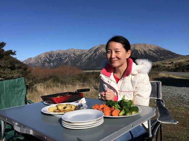 车上虽然有桌子,不过我们搬了露营用的桌椅,到车外去吃
