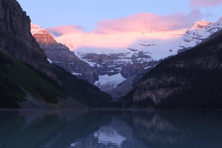 先是路易斯湖,然后迅速辗转至梦莲湖 传说中的梦莲湖被世界公认为最有拍照身价的湖泊,由冰川溶水形...