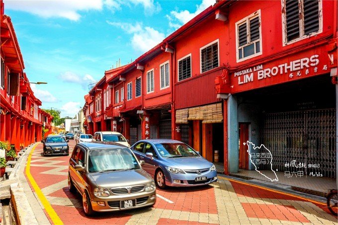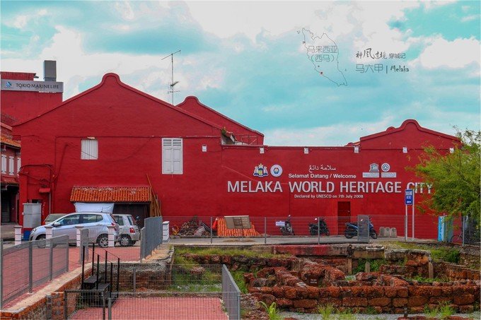 从青年博物馆和艺术画廊出来,穿过一条两旁骑楼都被刷成红色的“郑和将军路”(Jalan Laksamana Cheng Ho),即是马六甲世界遗产名城(Melaka World Heritage City)的主入口。