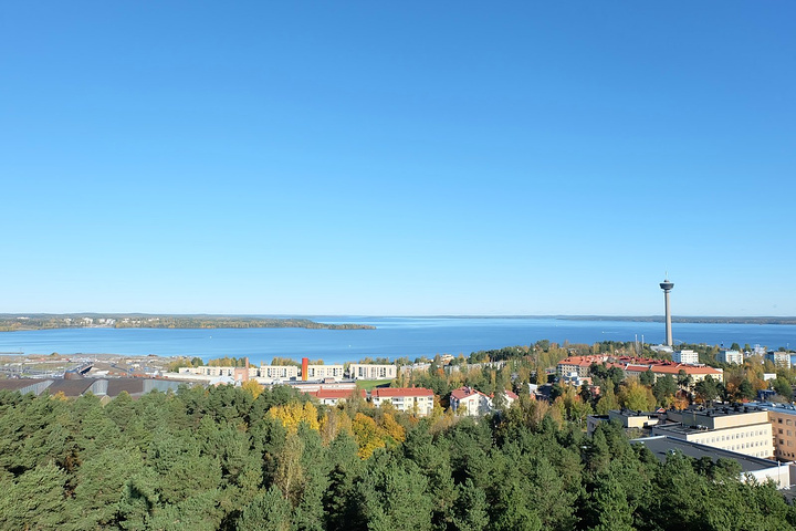 坦佩雷有一座瞭望塔,叫做“Pyynikki Tower”, 也被当地学生亲切换做“甜甜圈塔”。因为塔下有个咖啡厅,上塔看完风景,下塔享受一杯咖啡一个甜甜圈也是一种“传统”。登塔后可俯瞰坦佩雷市井湖景,费用似乎为两欧。我们去的时候正巧赶上坦佩雷市民日,免费开放。电梯每次只可上四人。