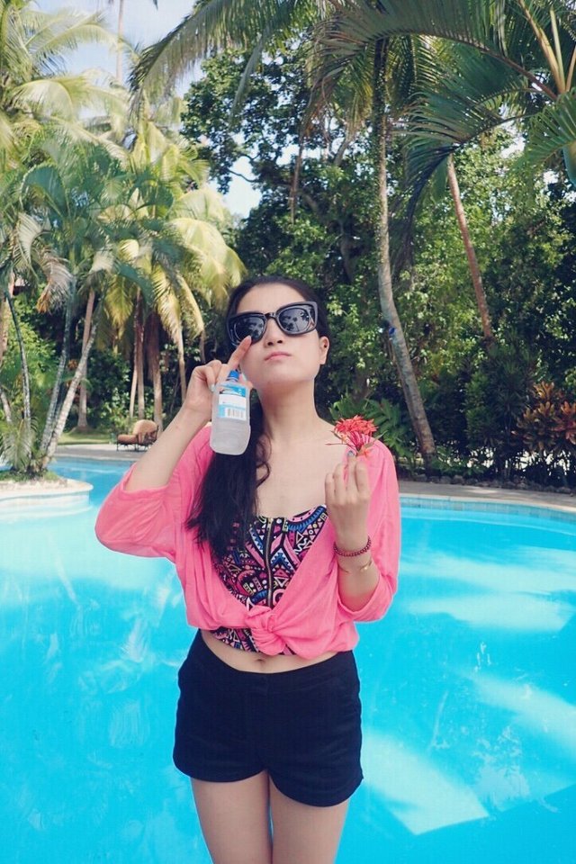 我们在水里折腾很久,但是强大的浮力和高盐分,始终无法成功甩出好看的头发弧度,哈哈~