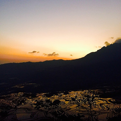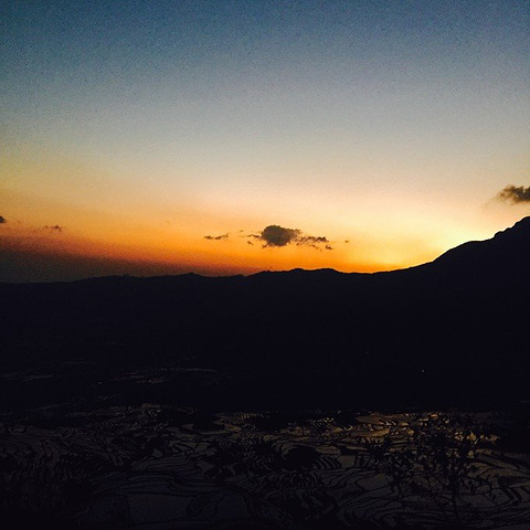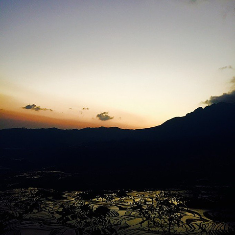 5:00 多依树 看日出 清晨5:00,起床出发,步行大概500米就抵达观景台。 多依树观景台有上下五六层,还有一个很大的咖啡厅,咖啡厅的一面墙是落地玻璃,冲着日出的方向。犯懒的游客可以干脆坐在咖啡厅里看日出。观景台上的最佳摄影位置早被别人占据。我们只能寻寻觅觅,从各个三角架之间找空地欣赏梯田。多依树状如港湾,背依大山,两侧临山,对面是山谷,是元阳看日出最好的地方,到元阳看梯田的游客,不去看多依树观日出胜景,那将是人生的一大憾事,彩霞、云海、梯田、村庄、晨雾,一切都显得诗意和雄浑。