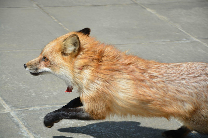 下来的时候,看到一只狐狸从我们身边跑过,不知道是野生的还是有人在养。拍它的时候,它突然停下来回头看我们,定了定。