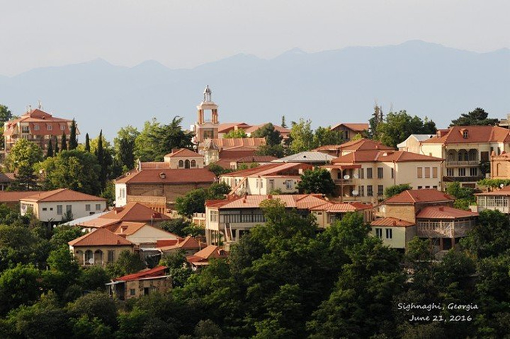 《山花正烂漫,去看看高加索的山可好》中提到的 锡格那吉 攻略望着连绵的雪山👀喝喝果汁🥃发发呆回程在路边的餐厅喝喝果汁,发发呆,如果在冬天,在这可以看到小镇背后是连绵的雪山。我们发呆的餐厅好不容易等到一丝光线来自游记山花正烂漫,去看看高加索的山可好