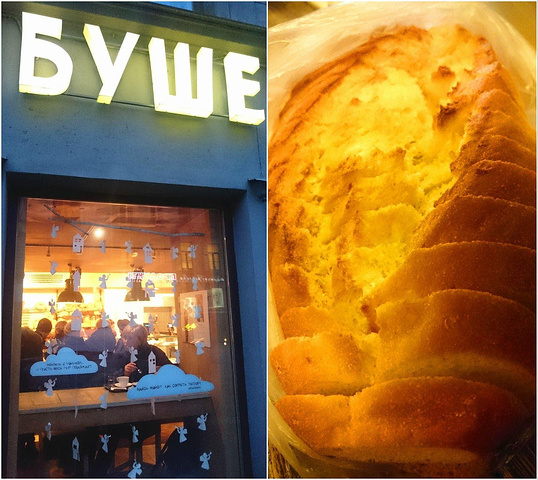 这家面包店就在伊萨克大教堂北面通往涅瓦大街的路上,面包的种类相当丰富,让人难以选择,价格也比较实惠。那些在柜台橱窗里的花式的面包味道不错,墙柜上的面包就是真正俄国风味了,只有小麦的味道,还带些咸味,这样的面包和我们的馒头在食物界的角色一样,就是干粮。 地址:Ул. Малая Морская,7