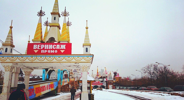 在去往依兹玛依拉瓦交通很方便,坐地铁3号线到Измайловская站,出地铁站后往左手边走,看到一个木制拱门,上写ВЕРНИСАЖ字样,之后直走就到了市场入口。