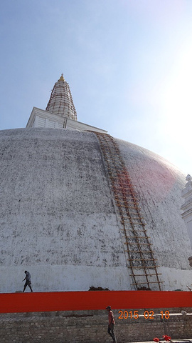 鲁梵维利萨亚佛塔是古城里修缮最完好也最有生命力的佛塔。 这座舍利塔始建于公元前 2 世纪,据说刚完工的时候有 110 米,但是现在只有 55 米高。 鲁梵维利萨亚佛塔同样由下令建造铜宫的杜图伽摩尼国王命令工匠建造,它也斯里兰卡境内是现存杜图伽摩尼国王下令建造的最美的建筑物,也是目前阿努拉德普勒古城中修缮最好的古建筑物。 由于佛塔工程体量庞大,直到杜图伽摩尼去世,大塔都仍未完工,好在萨达帝沙王子继位后继承父志,最在其任内终完成了大塔的建造。