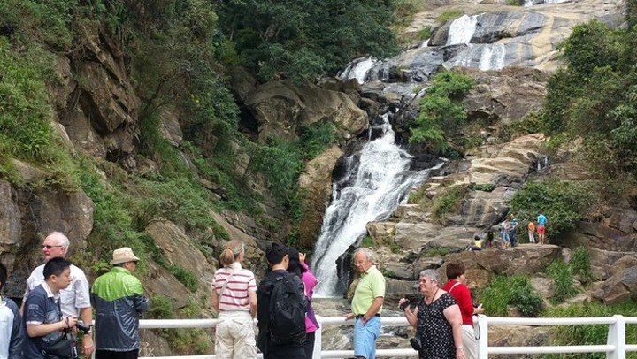 睡了一阵后,迷迷糊糊见睁开眼睛,眼前突然出现了一抹靓丽的景色。远处,一道银白色的飞瀑从山间倾泻而下,这就是著名的拉瓦纳埃勒瀑布 (Ravana Ella Falls)