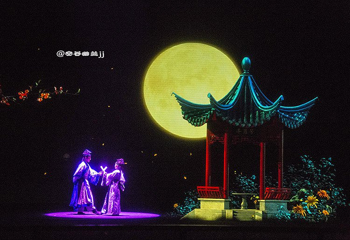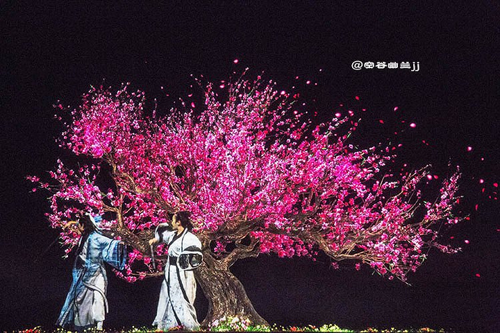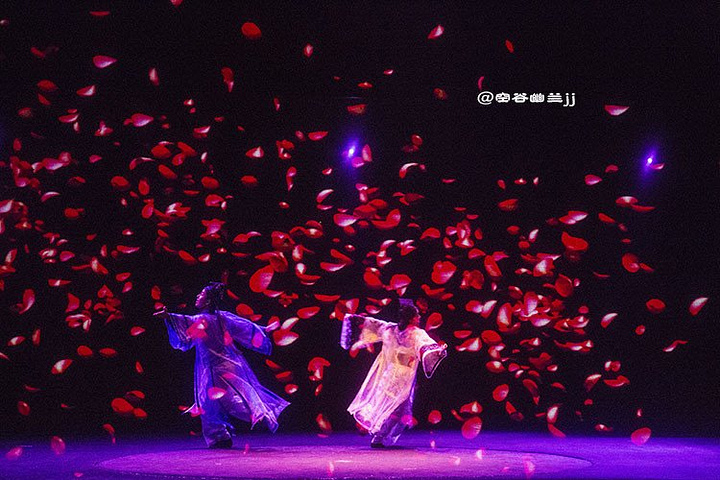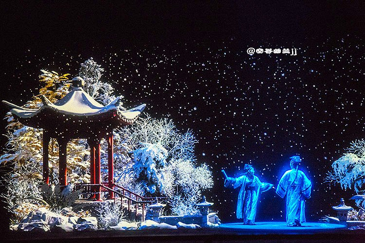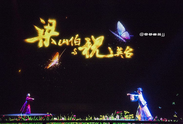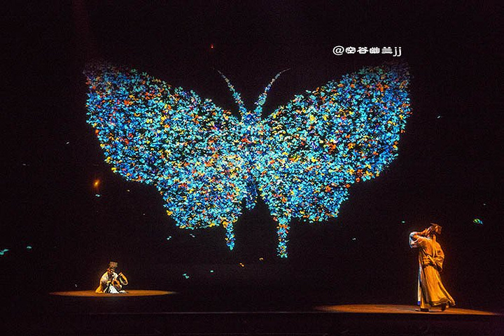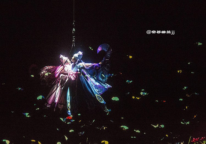 千古蝶恋是国内首创四面通透式幻影成像,结合真人舞台表演,随着音乐和唯美的场景如神仙眷侣轻盈飞舞,忽而花开满墙,忽而墙面崩塌甚至消失,真实再现梁山伯与祝英台缱绻缠绵的壮美爱情。跨越时空,梁祝化蝶,亦真亦幻的场景将千古绝恋娓娓道来。