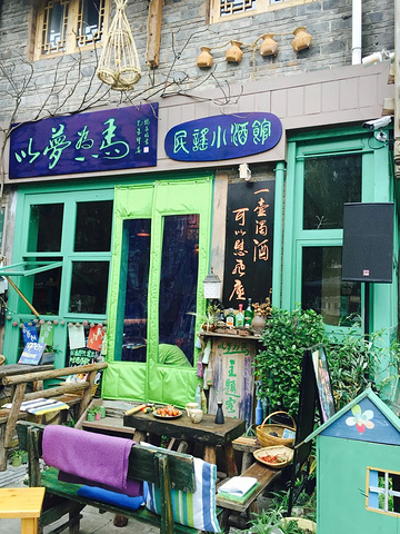 我有一壶浊酒可以慰风尘 忽晴忽雨的江湖 愿你以梦为马 随处可栖。 被这家“以梦为马”的民谣酒吧深深的打动。老板是个80后,有点胖,扎着文艺的辫子的北方汉子,老板娘是身材瘦小,样貌清秀的南方姑娘,两个人亲手装修的酒吧。我很钟爱这样的装修风格,也爱这么文艺的地方。我也渴望着有一天,你有酒,我有故事,我们可以以梦为马,随处可栖。