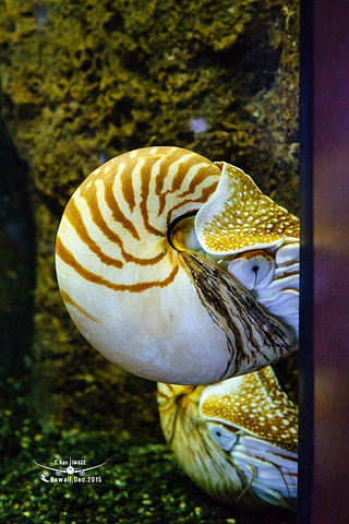 穿过威基基海滩就到了威基基水族馆(Waikiki Aquarium),这里一般的游客很少会涉足的。威基基水族馆是夏威夷大学开办的。来到这里,只是为了我大爱的鹦鹉螺。它有着5亿3千万年的历史,曾经一度被认为灭绝,在上世纪八十年代被美国科学家再度在深海发现。后来居然人工养殖成功,能亲眼看一眼太有幸啦!不但是它的历史牛,而且它的仿生学给人类带来了无限的可能,美国的鹦鹉螺号潜艇、B&W的鹦鹉螺音响、还有任何喜欢摄影的人都应该熟知的鹦鹉螺黄金分割构图法…来夏威夷看看它吧,因为它给我们太多的美好!
