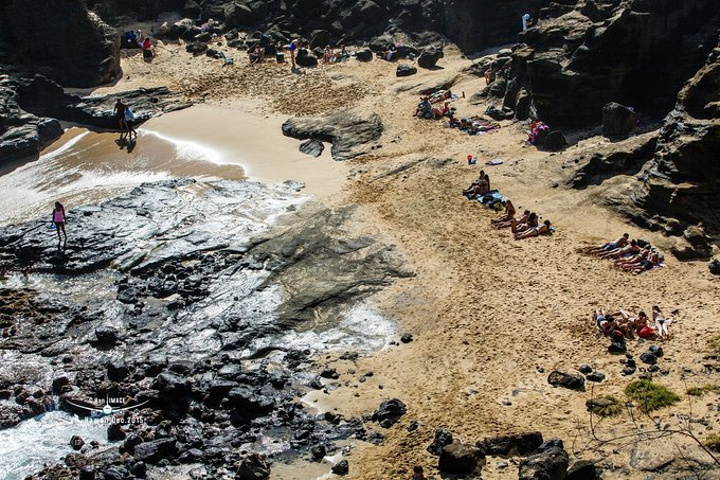 在喷泉口下面的一小块沙滩上,还有人依旧不俱怕海浪的凶猛,在这里游泳,真是佩服他们的勇敢。其实,不一定找一个什么著名的海滩,主要合适在夏威夷哪里都是度假的圣地。