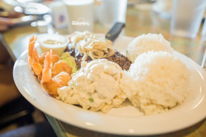 LOCO MOCO,这是一个带有美、日特色的夏威夷传统食物,俗称米饭汉堡,就是将汉堡肉饼和鸡蛋覆盖在米饭上,再浇上卤汁,类似于我们国内的盖浇饭。据说这家餐厅是loco moco的发源地,所以它也成了游客们来此的必点食物。但是,真的偏咸了点...大概是这边人的口味普遍偏重吧。