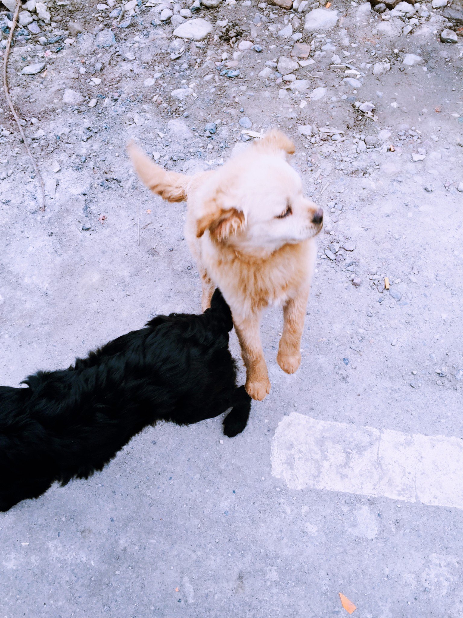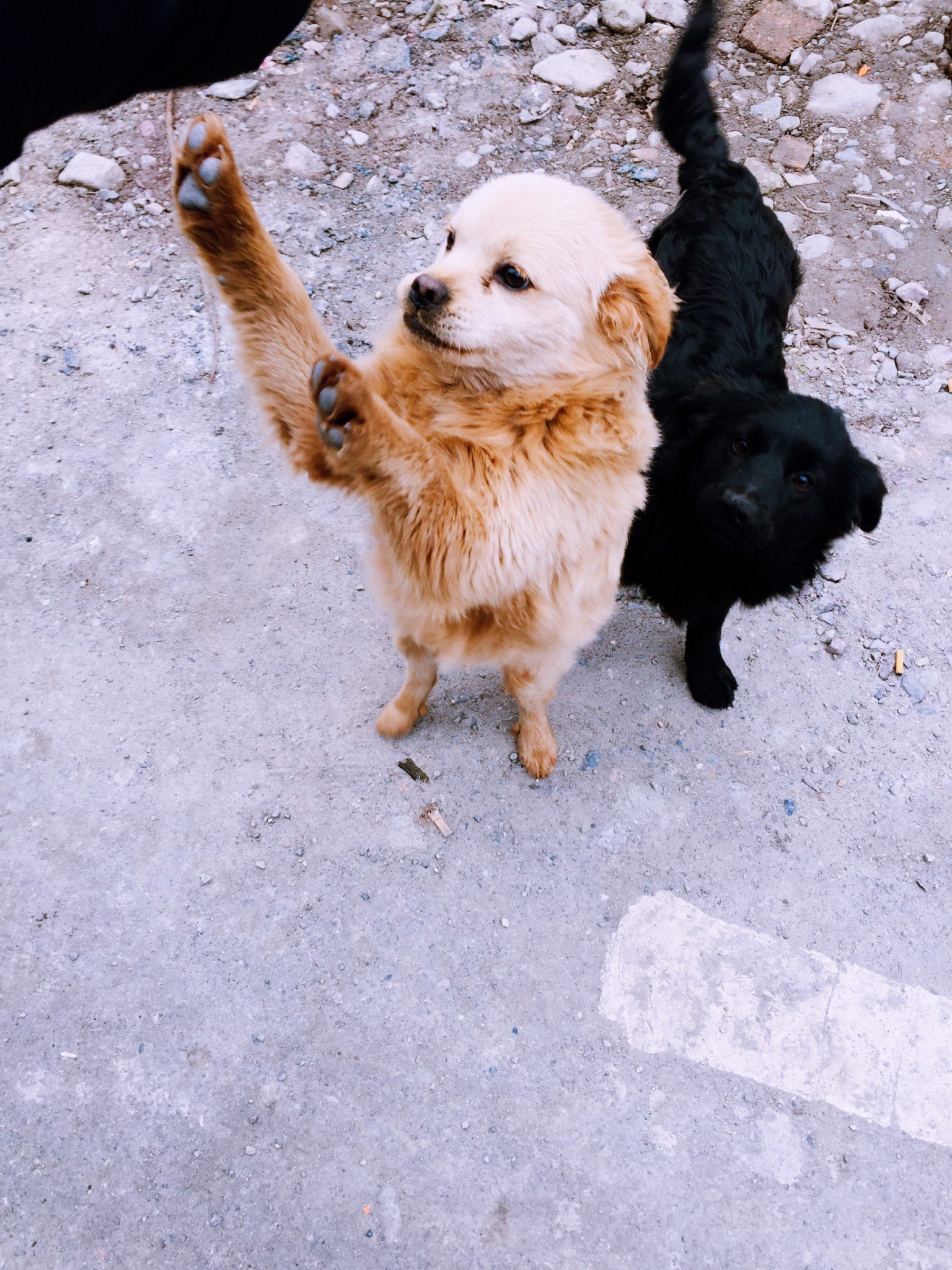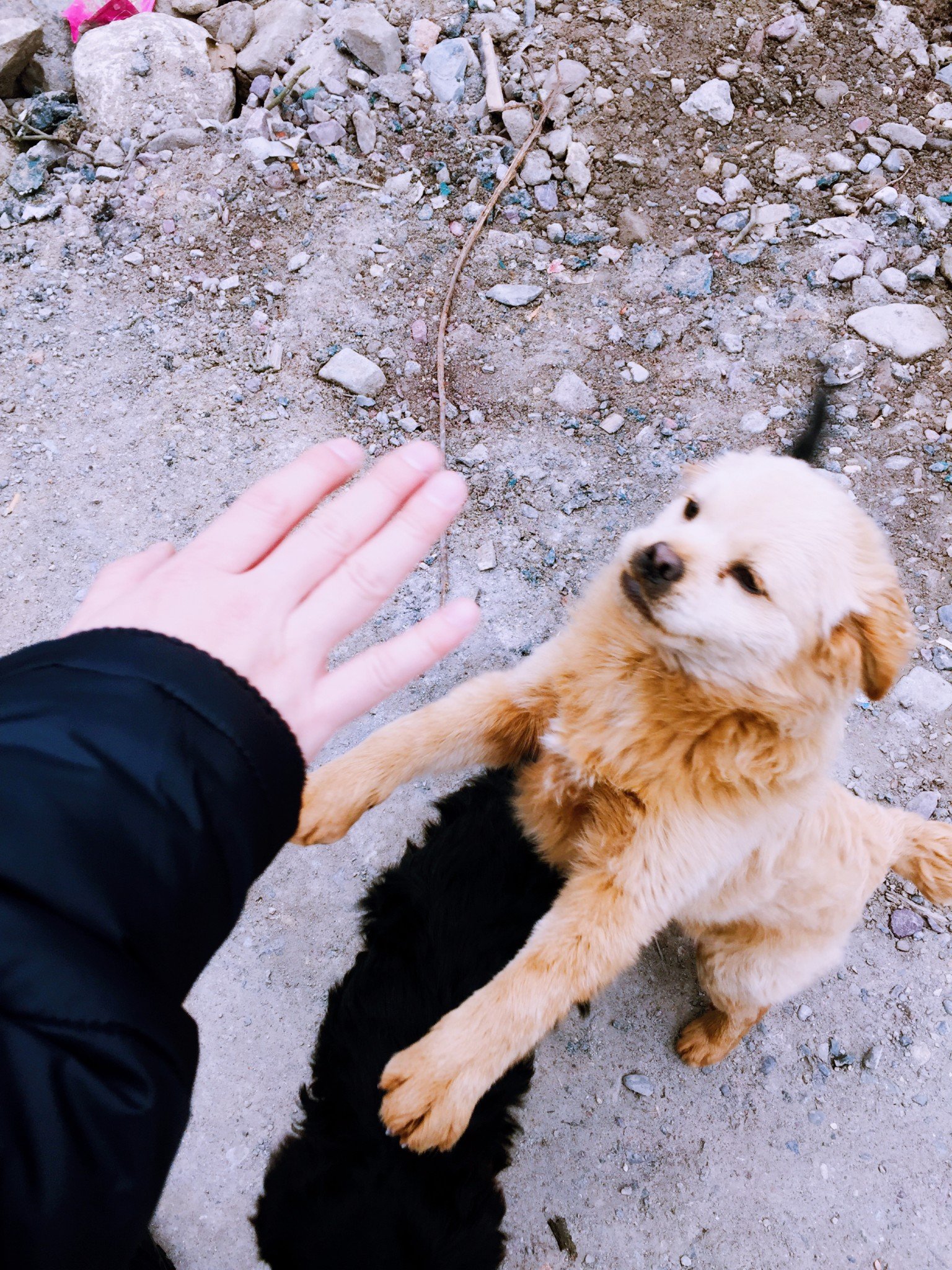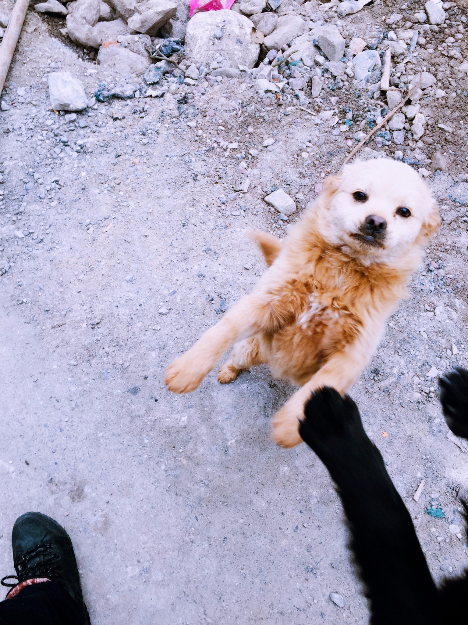 一路上有几处谨慎飞沙走石的警示,也没有拍什么照片,下面都是用苹果拍的。小黄和小黑一点也不怕生,也不急吼吼的叫,看见我和熊先生,百米开外就冲过来,非常可爱。