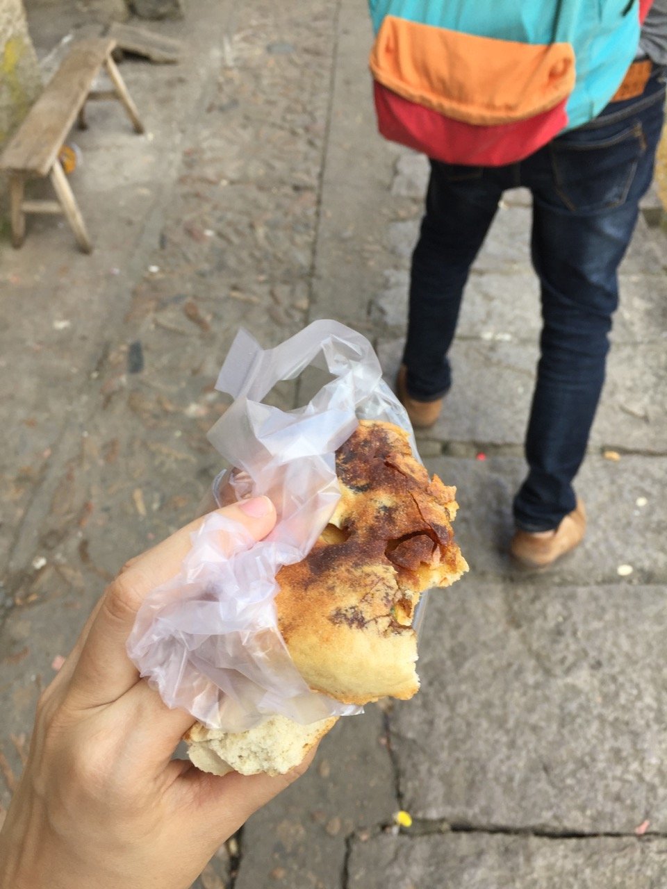 在这里吃到了我老家的特产——辣饼。只是这边的做法不辣- -不过味道还不赖,我们去的时候一人一块吃掉了,逛完特地原路绕回又一人吃了一块。。