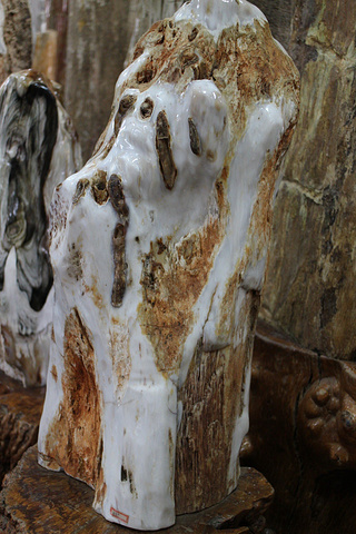 第五天·,早上起来吃了罐很好吃的砂锅饵丝,然后出发到芒市(全程114公里,过路费63元) 勐巴娜西珍奇园位于德宏州潞西市城东南,四周依山傍水、风光秀美、交通便利,占地526亩。现已建成具有古朴、自然、珍奇特色的高品位景点,是全国罕见的生态园林。"勐巴娜西"有神奇、美丽、富饶的意思,信步珍奇园,罕见的千年桂花、千年黄扬、千年紫薇、亿年硅化木玉石处处可及,园内春有花、夏有荫、秋有果、冬有绿,恍如一个美妙神奇的世界,令人叹为观止。 勐巴娜西珍奇园 内到处可以看见孔雀,这里的孔雀一点都不怕人,园区内古树林立,其中不乏贵重树种,最为惊叹的就是树化玉了,大自然真是奇妙,硬是把一颗颗大树演变成了玉石,向里面的工作人员打听了一下,这种演变要在特定的地质特性下经过几亿年才能形成树化玉,基本上都出土于缅甸,颗颗价值不菲,最低的都要十几万,其中树中有虫化玉的每条虫就要管十几万,我们这些穷人只能看看而已了。 门票30元