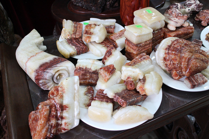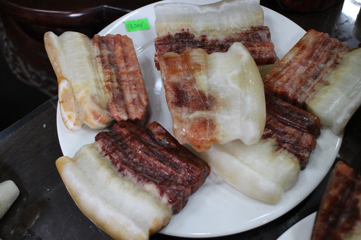 这些化石太神奇了,简直和真的一模一样,可能是几亿年前的另一个人类里的大户人家切好了还没来得及吃就遇到了毁灭性的灾难被埋在地底下了。这一小块玉肉要好几万块钱呢。