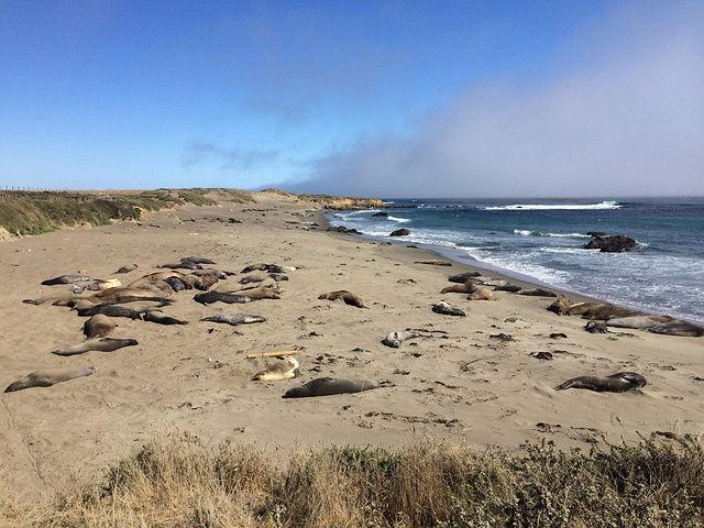 开出了无敌海景路段之后,发现之前的观景点停的太多了,接下来要赶的路比较多,所以进入了赶路模式,只在海象公园做了短暂停留,因为这些最重能达两千多公斤的巨无霸,集体躺在海滩上悠闲的睡懒觉。