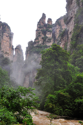 时间尚早,陈导建议我们在这里改道乱窜坡,不再去水绕四门通过百龙天梯登顶袁家界,既节省了坐电梯的银子和排队的时间,又可以欣赏沿途山色。我们看孩子们的体力不错,欣然接受,但也明白,我们在千里相会即将与金鞭溪作别,一路走来,穿行在这峰林迷宫,每一条溪流都是一种倾诉,每一座奇峰都是一种感悟:“最奇是此山,水幽绕峰间,山云同缱绻,溪山共缠绵”。