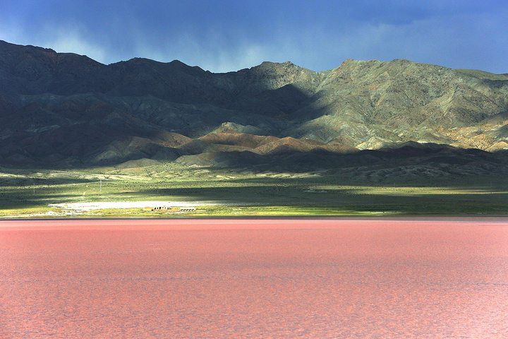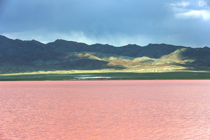 幻彩湖之所以成粉色,是因为它的湖水中含有一种盐生杜氏藻,能在含盐量极高的艰难环境中生存,并且体内含有杯状色素体,在生存条件不佳的情况下,会产生血红素 ,这导致了湖水呈现出大面积的粉红色。当地温度的差异,会导致盐生杜氏藻体内的血红素产生变化,高温下的幻彩湖湖水比低温下的幻彩湖湖水来来得更淡些,这就导致了为什么幻彩湖的湖水会不断变色。另外,在光照的强度不同的条件下,幻彩湖夜会变色。这可真是一座幻彩神秘之湖。