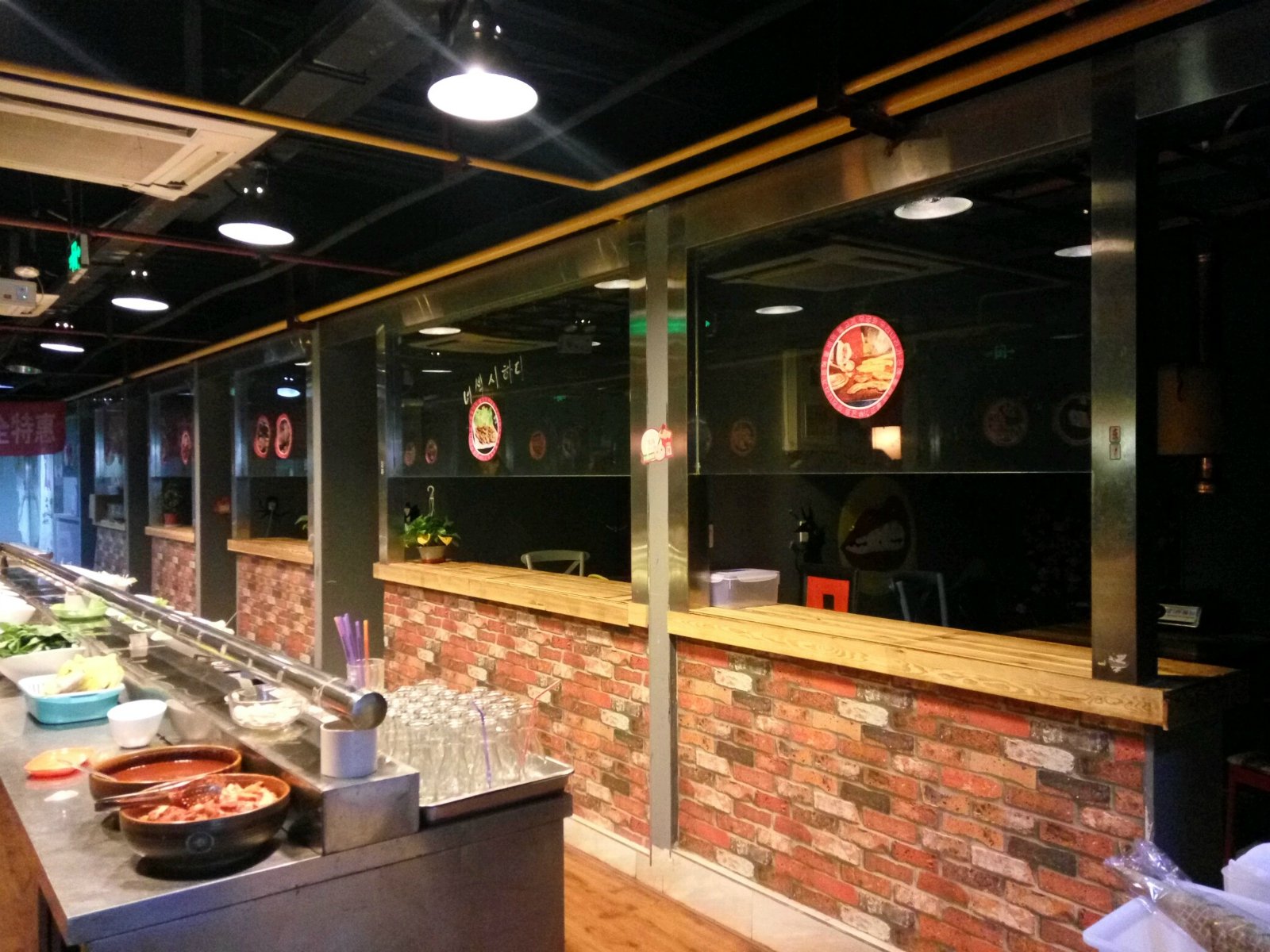 正文;①环境评价:4颗星,位于一个小吃楼里面,但是该火锅店属于独立的一层,乘坐电梯达到5楼,出电梯便是这家自助火锅店,入门便是自家的招牌,和韩语,入门便体会到了一种韩式装修的感觉,往里面走便是用餐区,各色的桌椅摆放整齐,地面干净务杂物,窗户处摆放中各式花草,给人眼前一亮,绳结的顶棚加入韩式元素,使得整体空间更具韩式感觉,再往里走,便是菜品摆放区,各种菜品摆放整齐,两侧是包间,包间各种类型的涂鸦。再往里便是厨房区域。