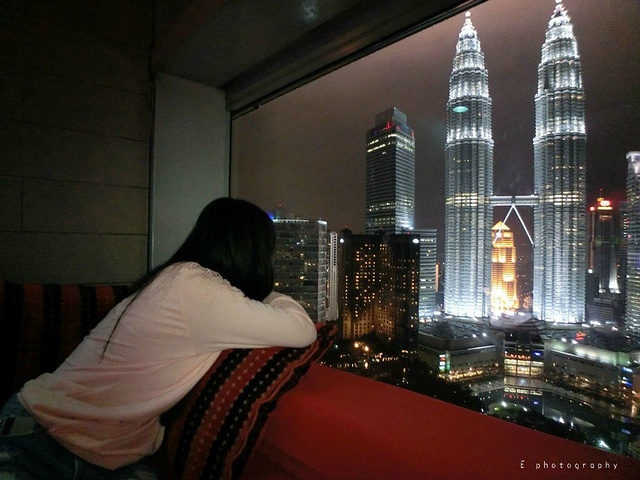 到酒店又开始下雨,我们决定先去sky bar喝点东西,等雨停了再来双子塔看夜景。 sky bar果然非常爆满,需要排队。但因为我们是酒店的住客,所以有优先权,不到五分钟就给我们安排了靠窗的位置。
