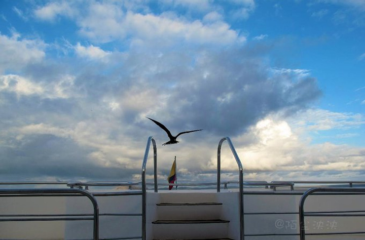 只要开船,马上有军舰鸟随行,有它们的陪伴,景色就不那么苍凉了