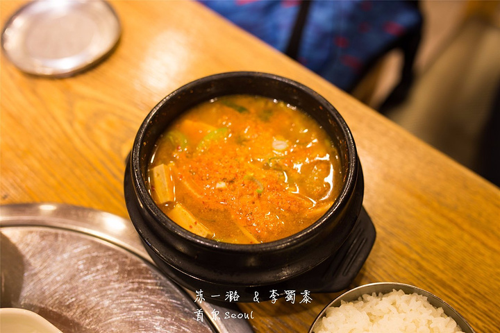 我们无意间走进的一家餐厅,只因为他们的餐厅名字是中文,比较好认。后来发现这家店还挺有名的,梨泰院店还是总店,另外在明洞也有分店。这家店主打韩国烤肉,进店就能看到屋顶悬挂的吸烟器,而桌子中空可以用来烤肉,整体装修都是暖黄色,让人很有食欲。除了可以桌食,店里还有榻榻米,可以坐在榻上吃饭。店员有华人,会说中文,沟通也很方便。店员会推荐主打的烤牛肉,烤牛胃和牛大肠。本地的韩国人一般都在吃烤肉,而餐桌上并没有弥漫熏人的烟味,看来是烧的碳也比较好。我们还看到有西方人席地而坐在吃烤肉。 实用信息: 电 话:+82-2-794-3392;+82-2-749-9233 地 址:首尔特别市龙山区梨泰院洞124-4,2F 营业时间:周一-周日10:00-24:00