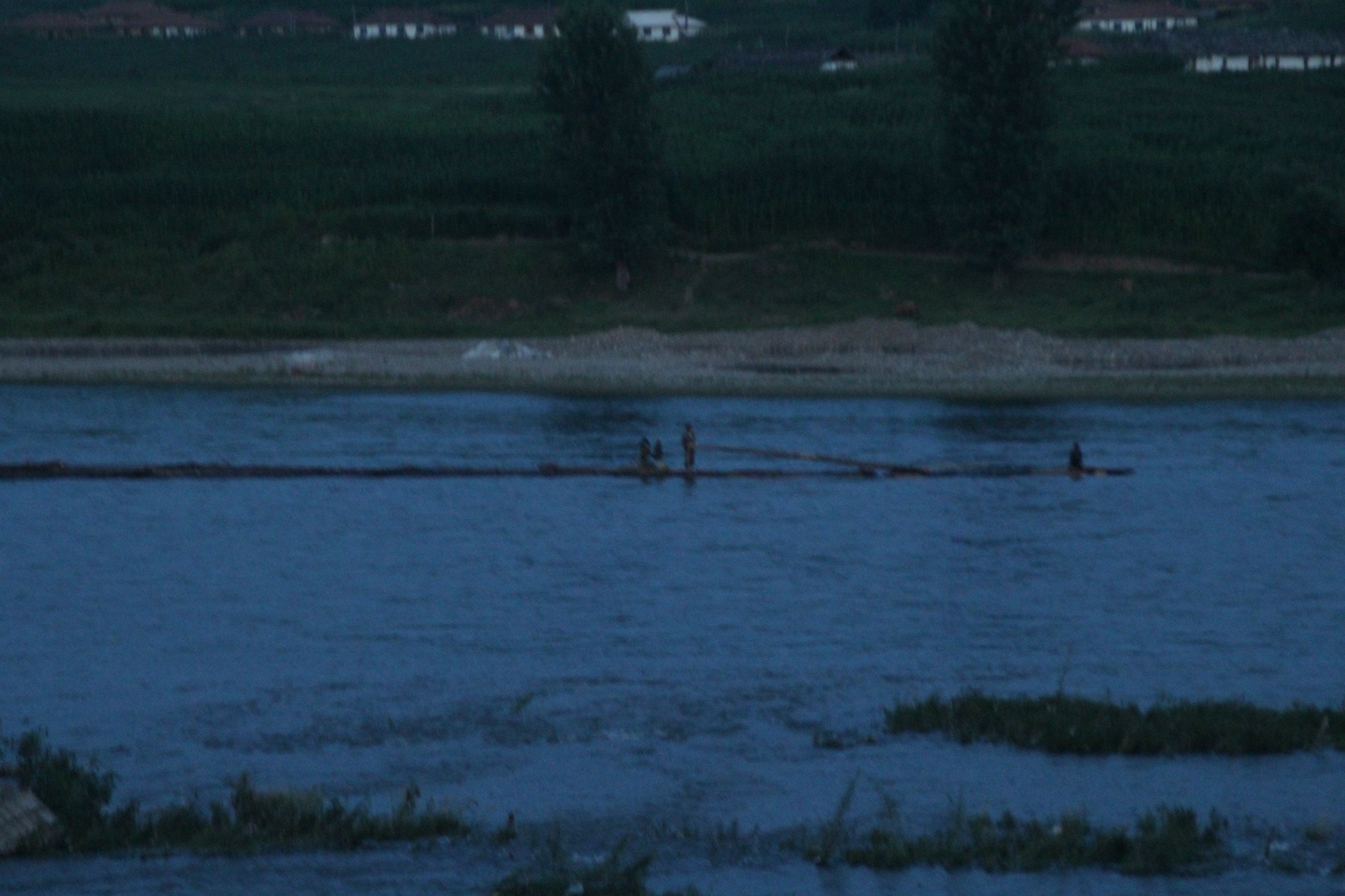 放 木排的 朝鲜人 ,夜行在 临江段 鸭绿江 上 。辛苦 危险的行业 ,风餐露宿 在 木排 上 。