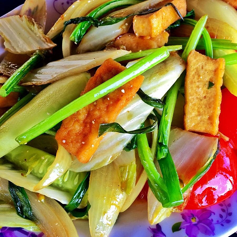 我俩本来蔫的萎靡在桌子上,看到第一道菜上桌,立刻夹起狂吃,一颗菜叶下肚,终于有了再继续吃的力气
