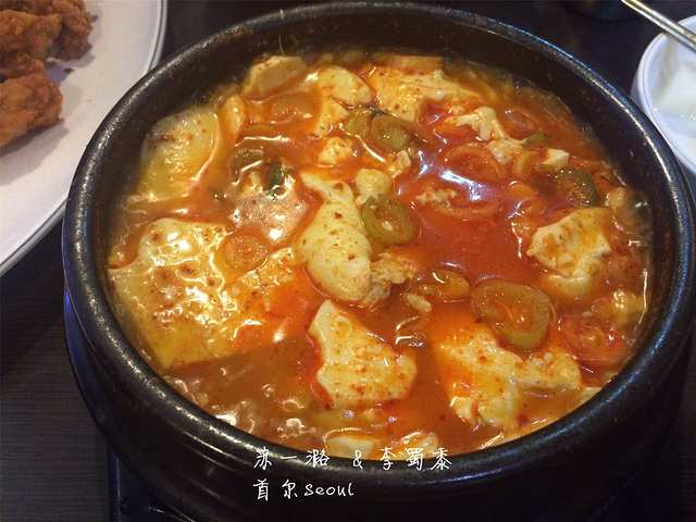 Two Two炸鸡是韩国连锁品牌,代言人是姜东虎。他们家炸鸡有各种口味可供选择,有脆皮炸鸡/辣味炸鸡/酱油炸鸡/葱拌炸鸡等,还可以双拼。炸鸡的肉质很新鲜,似乎加了特质调味料,因此味道独一无二。外皮酥脆,内里鸡肉嫩滑,我这个不爱吃肉的人都很喜欢吃。炸鸡不可避免的有一点点油,就着生菜和番茄酱可以解腻。除了炸鸡,他们家还卖韩国料理,比如石锅拌饭/大酱汤/韩式拉面等。人均大约150元。