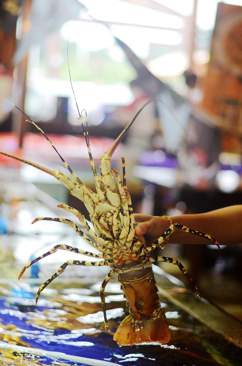 鱼池中各式生猛海鲜,看得都很有食欲。